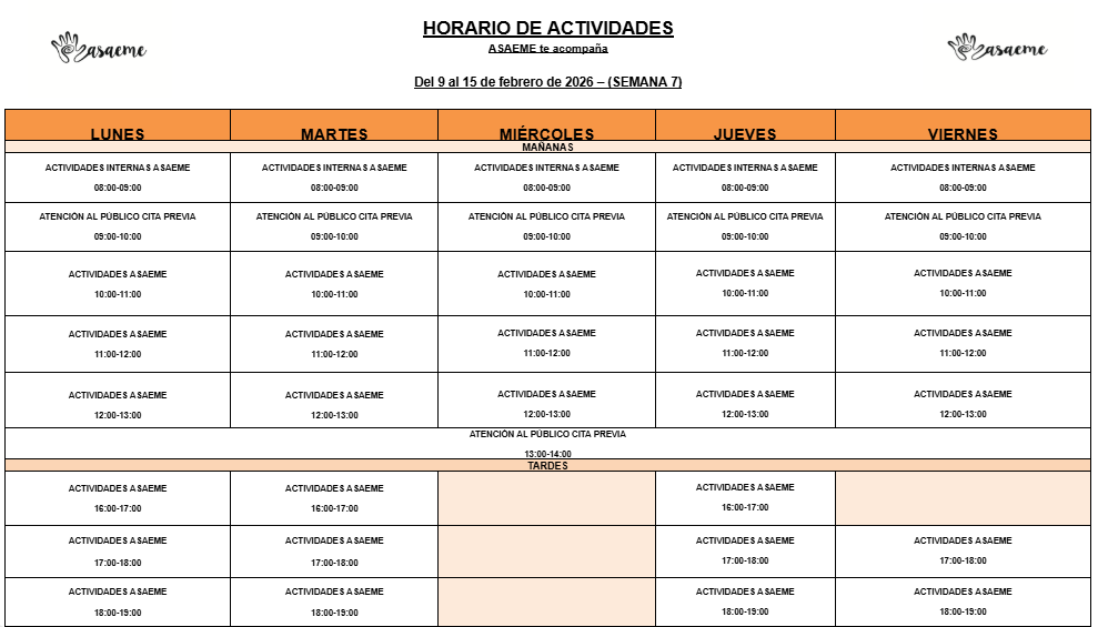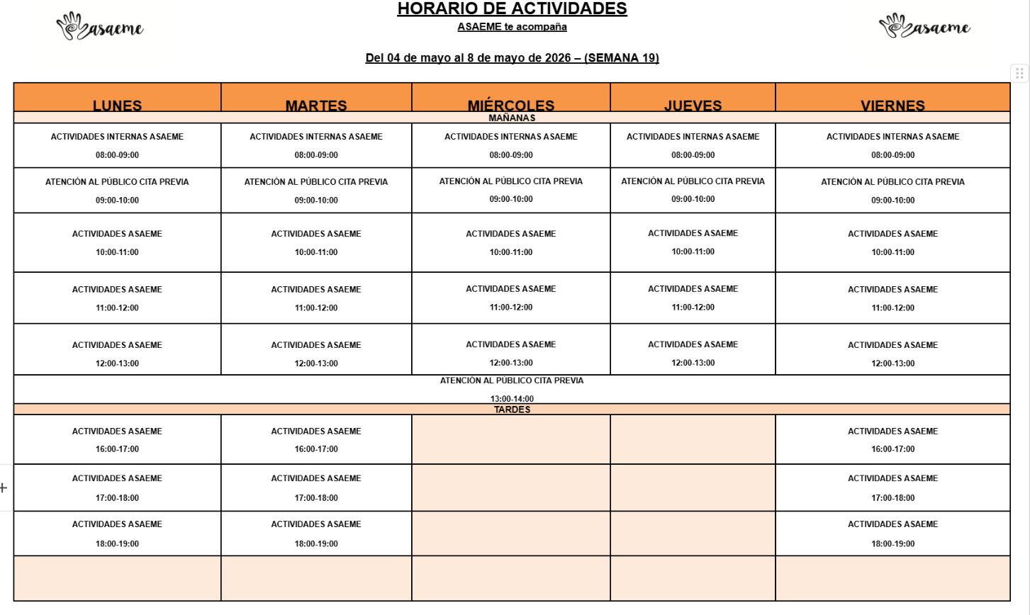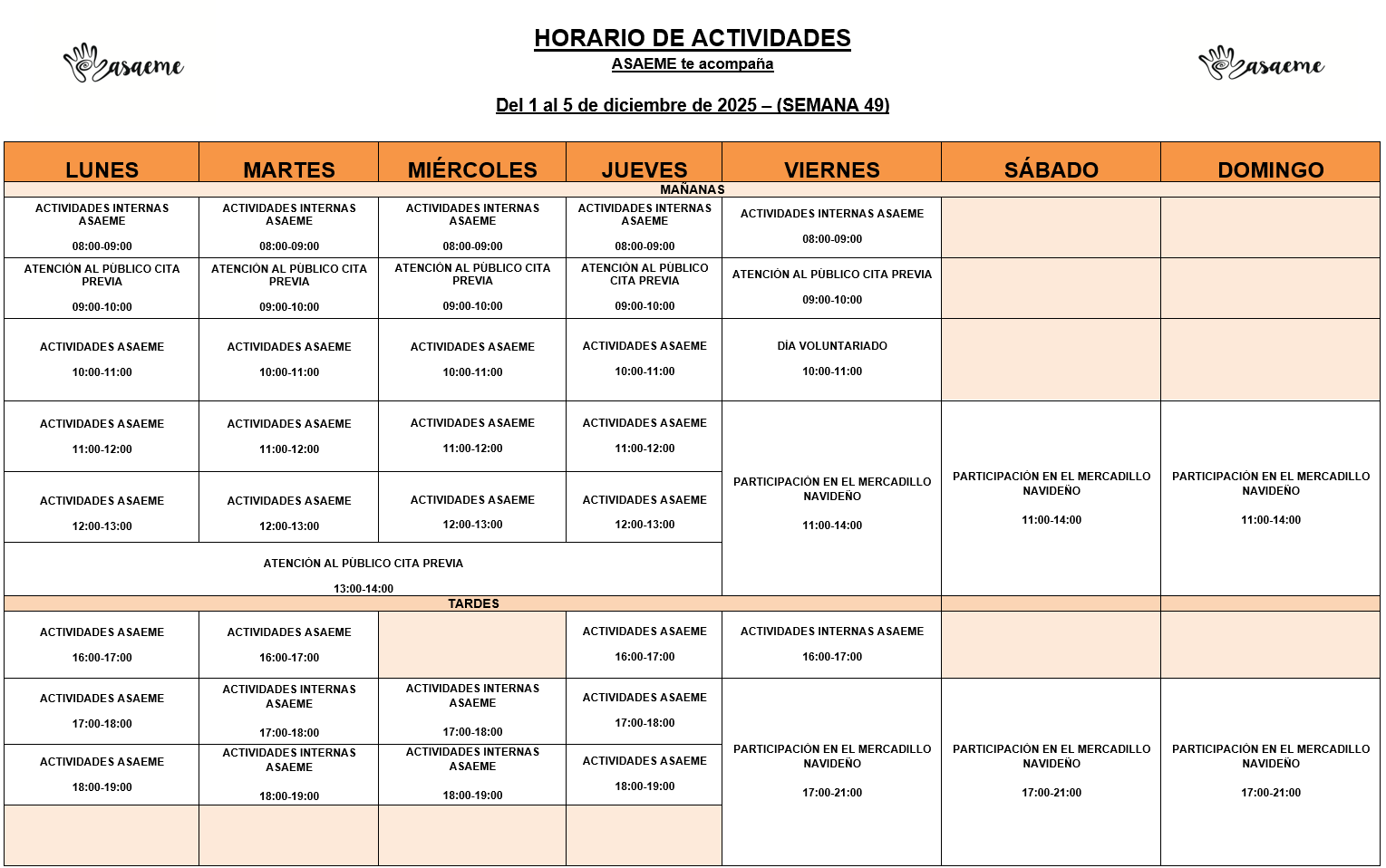 CALENDARIO DE NUESTRA ASOCIACIÓN